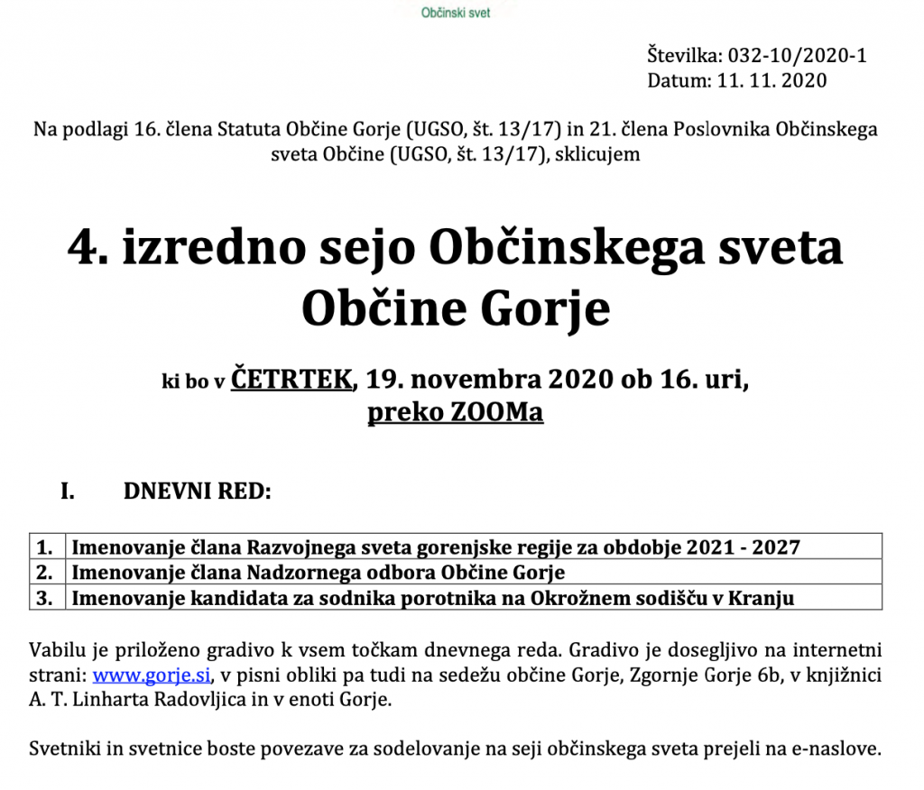 Vprašanje na mestu je, kaj se dogaja v Gorjah, da bo v tako kratkem časovnem obdobju (14 dni), potekala že tretja seja Občinskega sveta Občine Gorje.